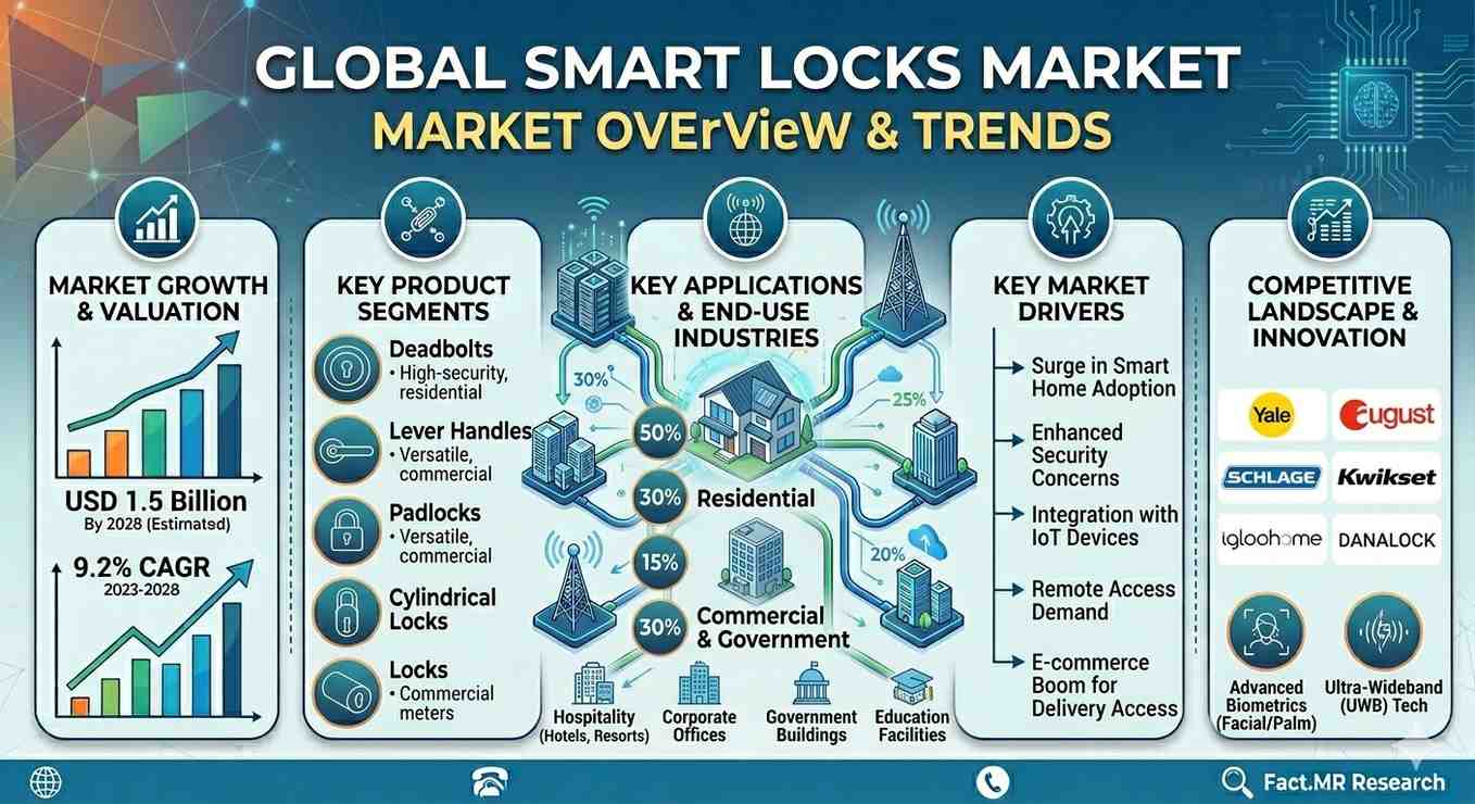 The global smart locks market is transitioning from mechanical security to intelligent access control, driven by IoT adoption, urbanization, and evolving consumer expectations. As connectivity and cybersecurity become central to modern living, smart locks are emerging as critical components of next-generation security ecosystems.