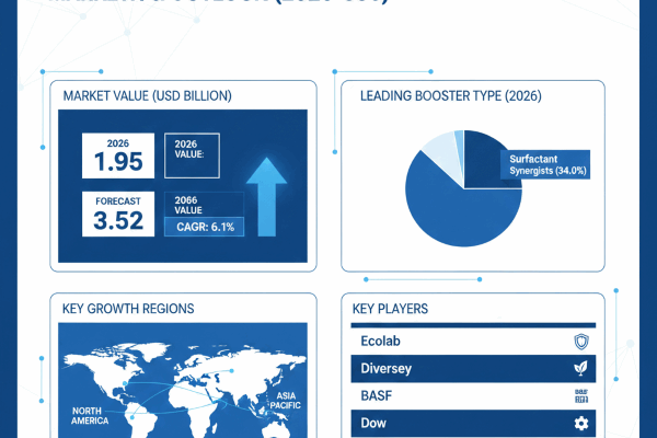 The market is shaped by increasing demand for high-performance disinfection products in healthcare facilities, commercial buildings, industrial settings, and residential spaces. Manufacturers are focusing on developing boosters that work effectively with multiple disinfectant chemistries, while remaining safe for frequent use and compliant with evolving regulatory standards.