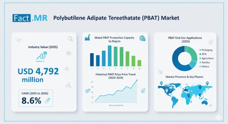 The global Polybutylene Adipate Terephthalate (PBAT) market is set for robust expansion as industries worldwide accelerate the transition toward biodegradable and compostable plastic alternatives. According to a recent report by Fact.MR, the market is projected to rise from USD 1,928 million in 2024 to USD 4,792 million by 2035, registering a strong CAGR of 8.6% during the forecast period.